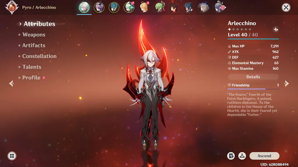 This is a Genshin Impact reroll account featuring Arlecchino on your chosen server: