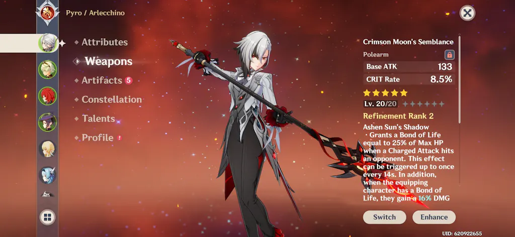 Arlecchino With Crimson Moon's Semblance - Genshin Reroll Account