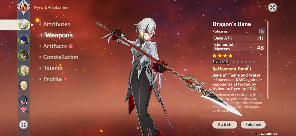 This is a Genshin Impact reroll account featuring Arlecchino on your chosen server: