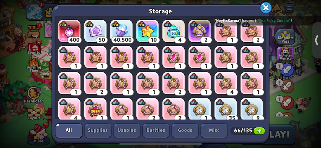 This is a Cookie Run Kingdom reroll starter account on the Hollyberry server with