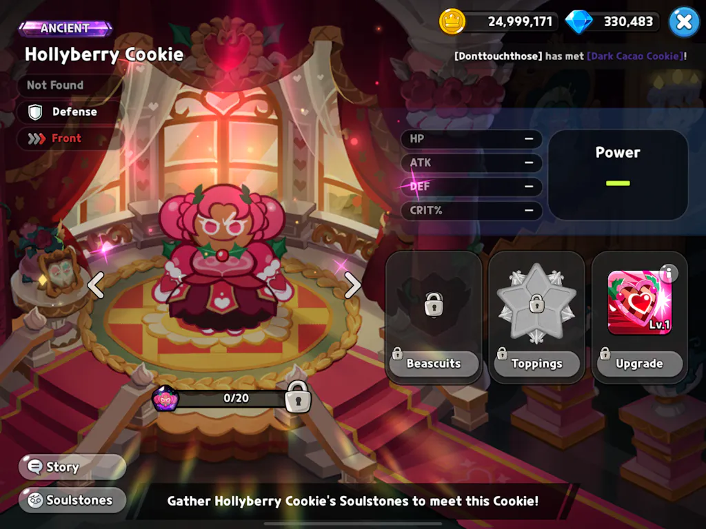 This is a Cookie Run Kingdom reroll starter account on the Hollyberry server with