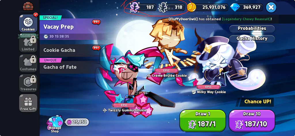 Came with dragon pitaya as promised, even gave me dark cacao, along with some BTS cookies. 370k crystals, 300+ regular cookie cutters, almost 200 magical cookie cutters, 500+ treasure tickets, 23k heroic torches, 70k rainbow cubes, and many other useful consumables! Very worth the price, highly recommend.