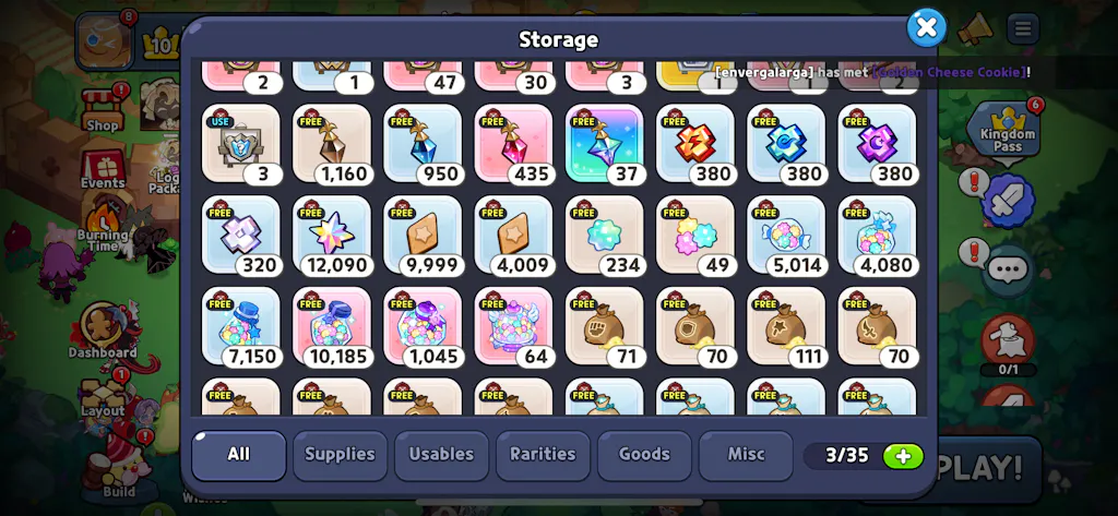 This is a Cookie Run Kingdom reroll starter account on the Hollyberry server with
