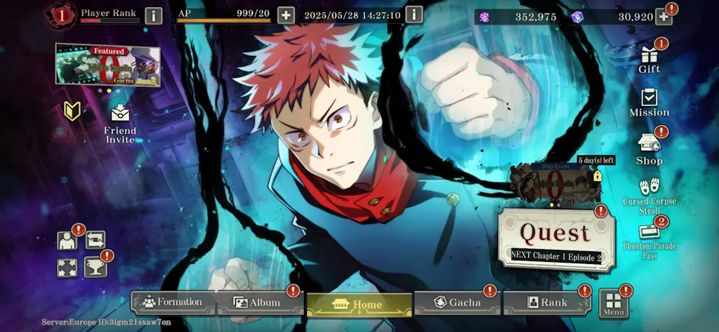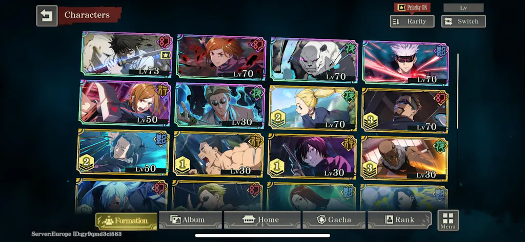Jujutsu Kaisen Phantom Parade Reroll Account [EUROPE]
