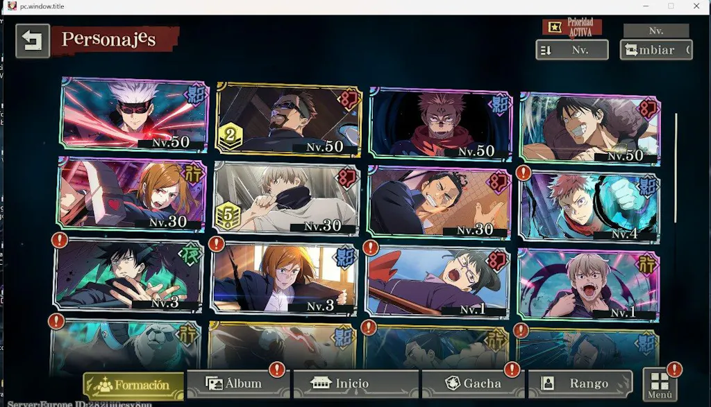 - This listing is for a Jujutsu Kaisen Phantom Parade reroll account on the Europe server with: