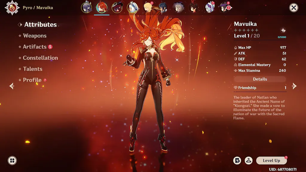This is a Genshin Impact reroll account featuring Mavuika on your chosen server: