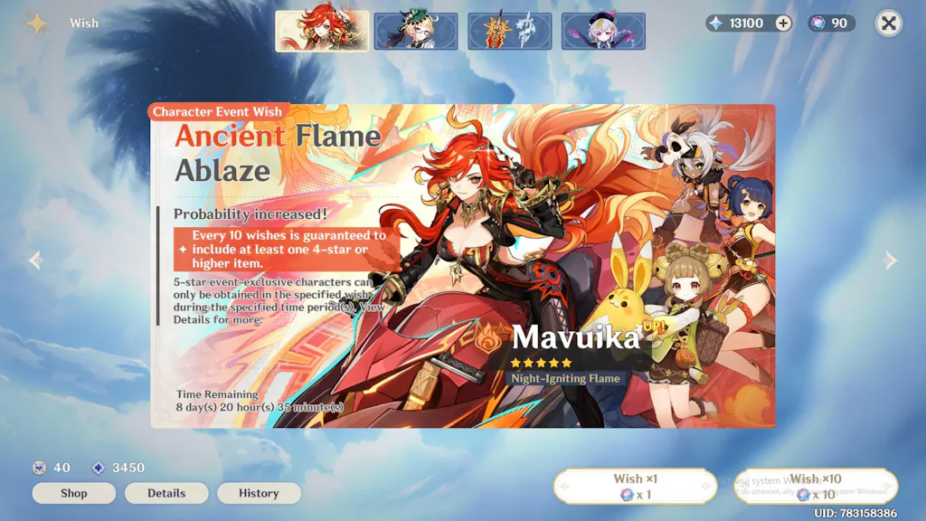 Mavuika Reroll Account with Primogems