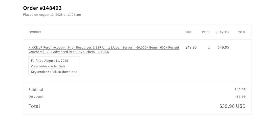 - This is a GODDESS OF VICTORY: NIKKE reroll account for the Japan server. Each version contains a different set of resources, including gems, recruit vouchers, and a guaranteed number of SSR characters. Check the dropdown menu to view all available configurations.