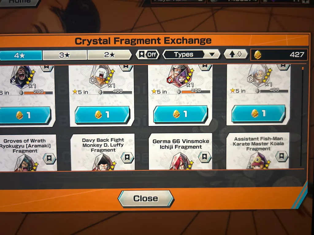 - A number of Rainbow Diamonds, 4⭐ Crystal Fragments, and additional characters as shown in the image